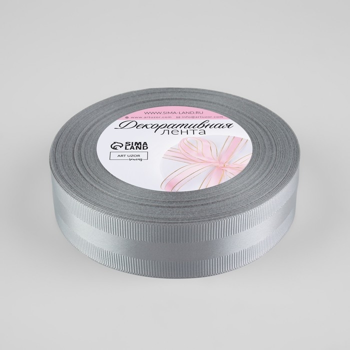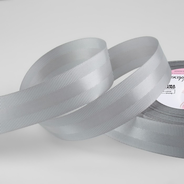 Лента декоративная, репсовая/атласная, 25 мм, 18 ± 1 м, цвет светло-серый