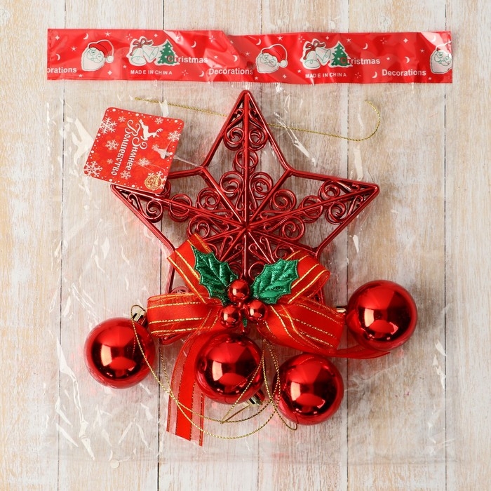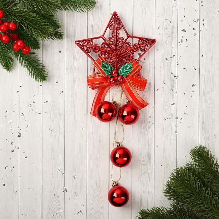 Украшение новогоднее "Уютная сказка" шары узорная звезда, 12х29 см, красный