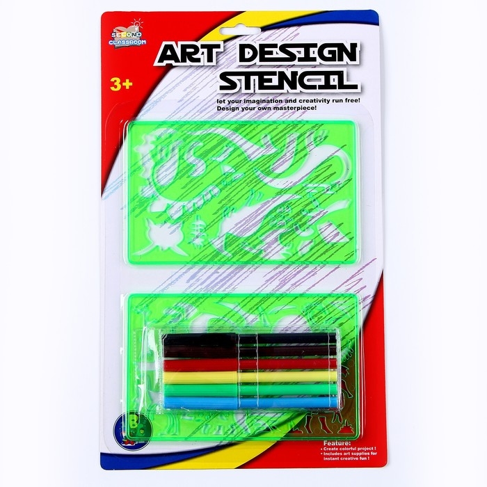 Трафареты «Динозавр», набор 2 шт., 6 шт. фломастеров