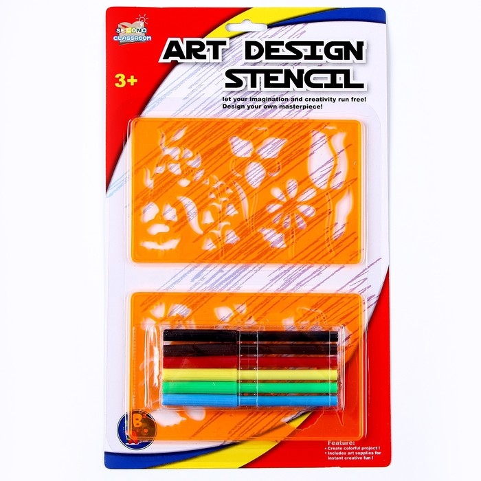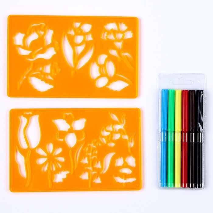 Трафареты «Цветы», набор 2 шт., 6 шт. фломастеров
