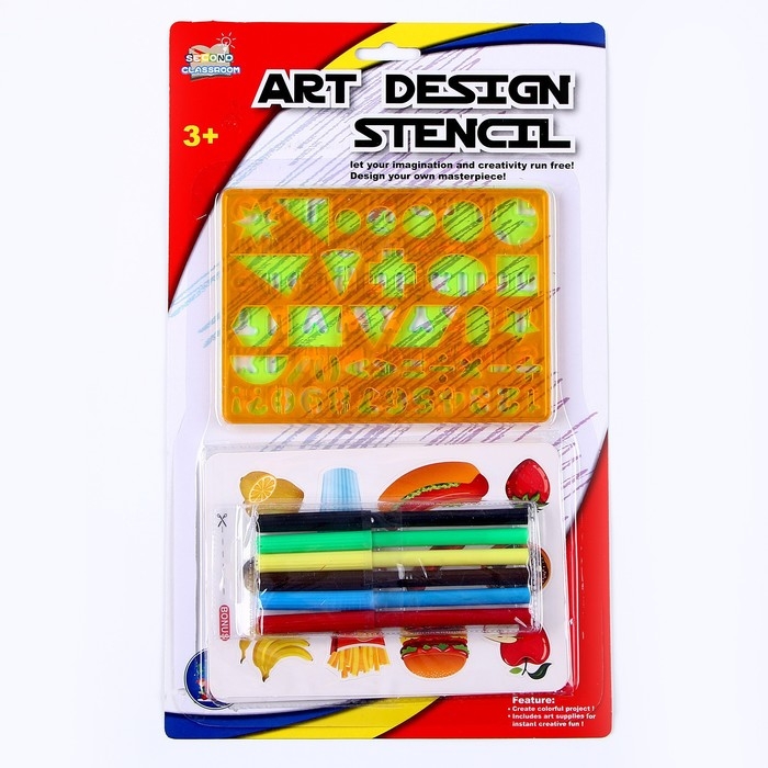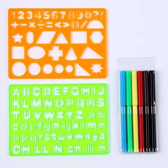 Трафареты «Цифры и фигуры», набор 2 шт., 6 шт. фломастеров