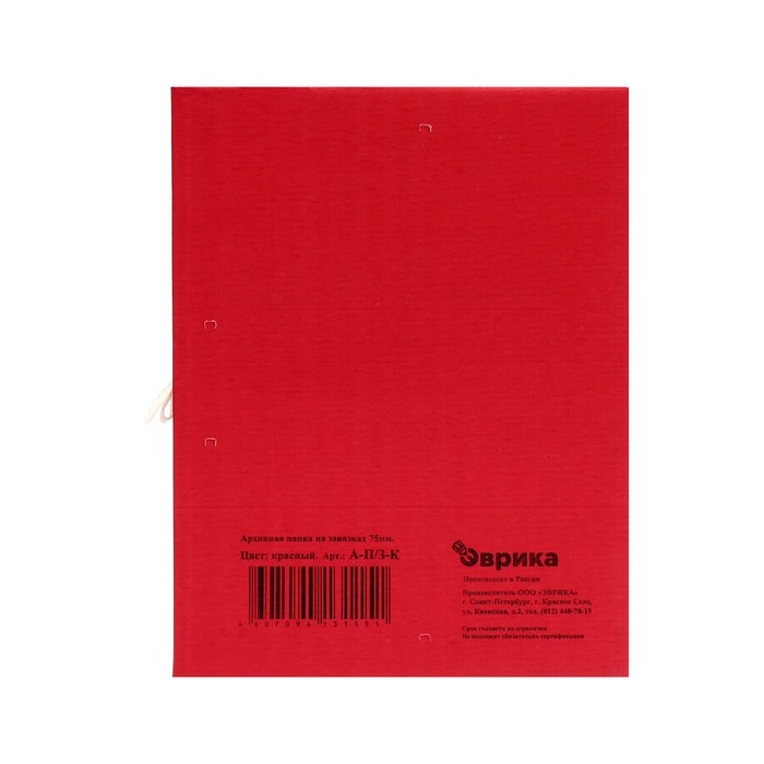 Папка архивная на резинках формата А4 идеально подойдёт для хранения документов. Товар изготовлен из микрогофрокартона красного цвета. Папка обеспечивает максимальный доступ к документам при раскрытии. Прочная конструкция и стандартизованный размер позволяют хранить документы вертикально и горизонтально на стеллажах или в архивных коробах. На лицевой и боковых гранях имеются поля для маркировки. Размер папки: 235 х 75 х 325 мм, ширина корешка: 75 мм, вместимость 700 листов.
