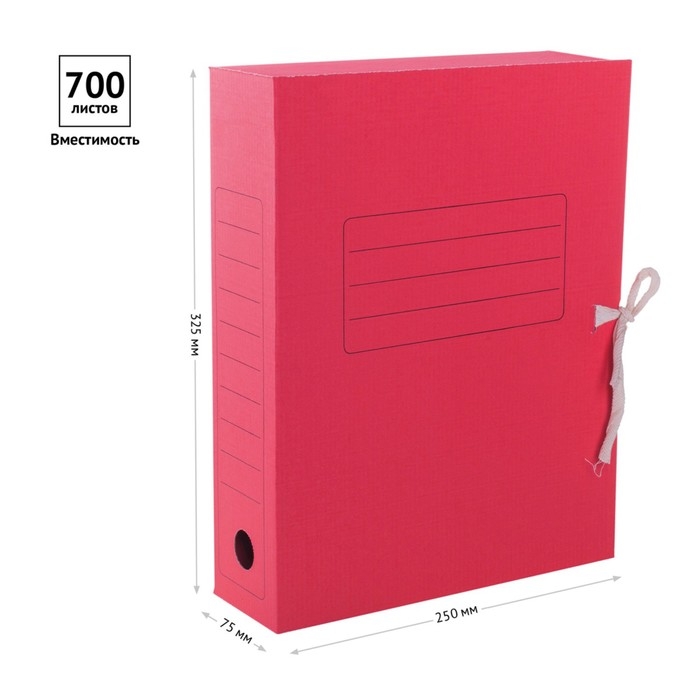 Папка архивная с завязками Calligrata, микрогофрокартон, 70 мм, до 700 л, красный