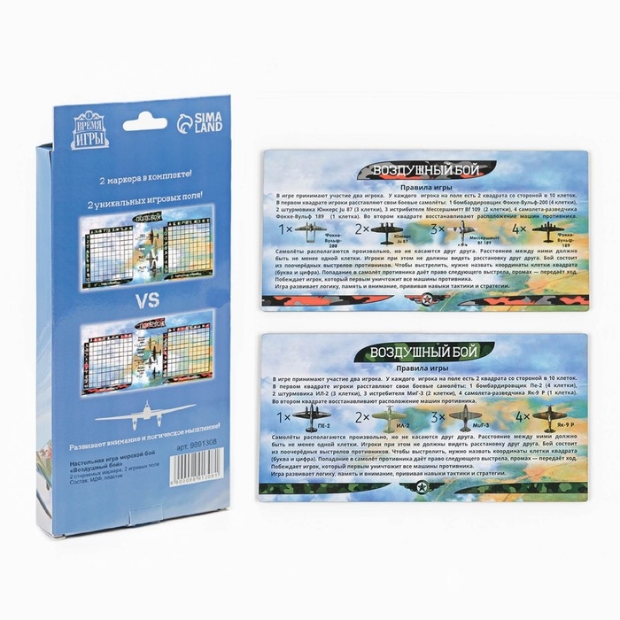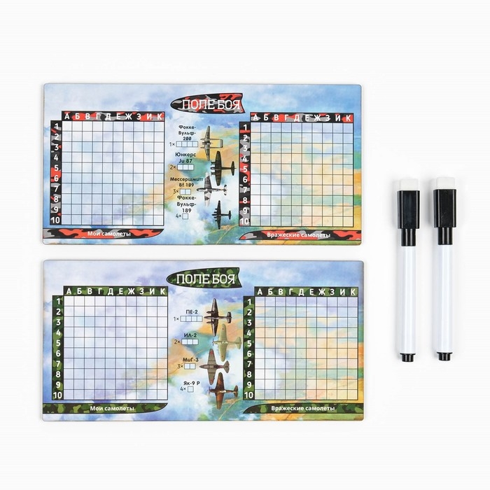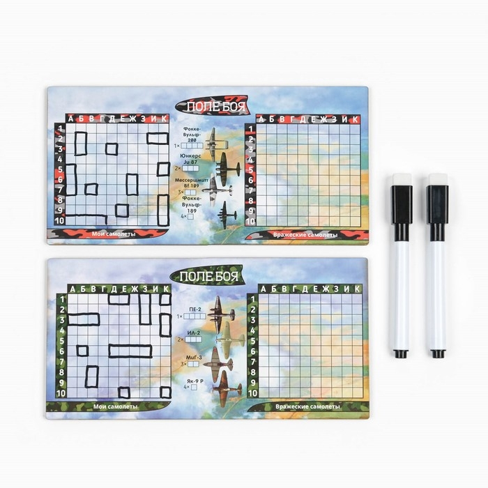 Настольная игра морской бой "Воздушный бой": 2 стираемых маркера, 2 деревянных поля
