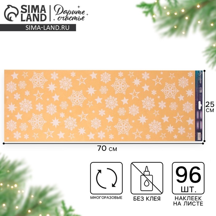 Виниловые наклейки на окна «Снежинки», многоразовые, 70 х 25 см, Новый год
