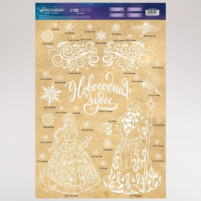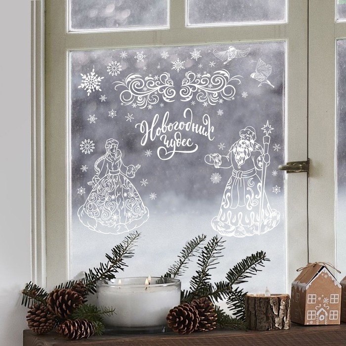 Наклейки для окон «Дед Мороз и Снегурочка», многоразовая, 33 х 50 см, Новый год