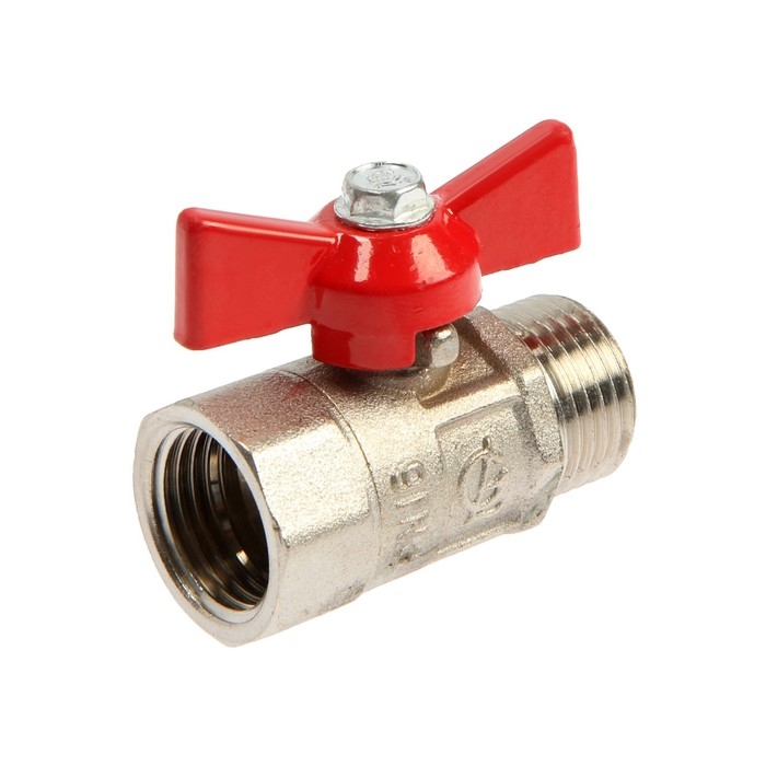 Кран шаровой "ГАЛЛОП" ПРАКТИК DN-15 131, внутренняя/наружная резьба 1/2", бабочка, никел.