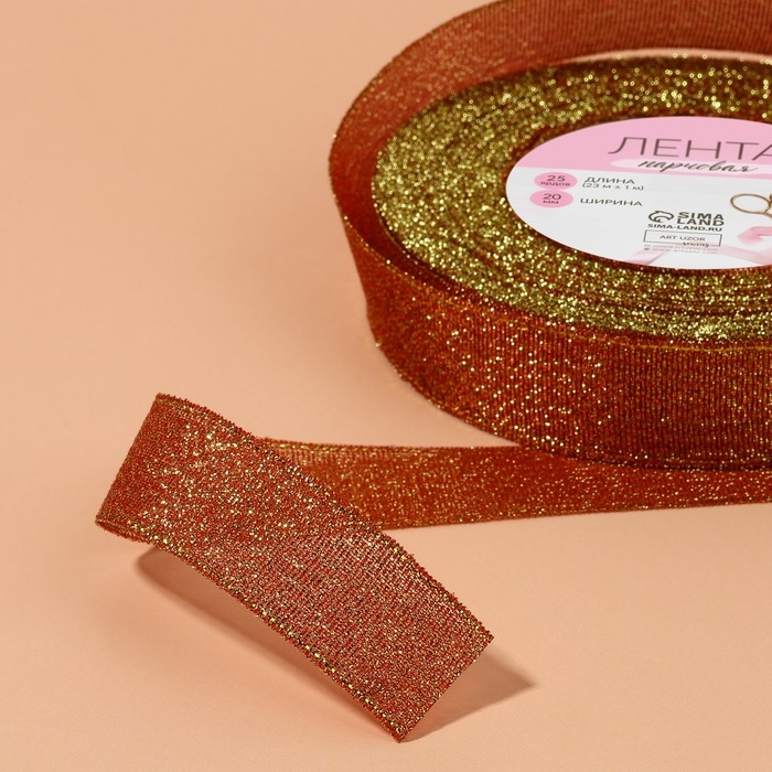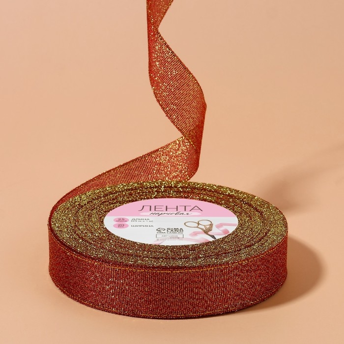 Лента парчовая, 20 мм, 23 ± 1 м, цвет бордовый №034