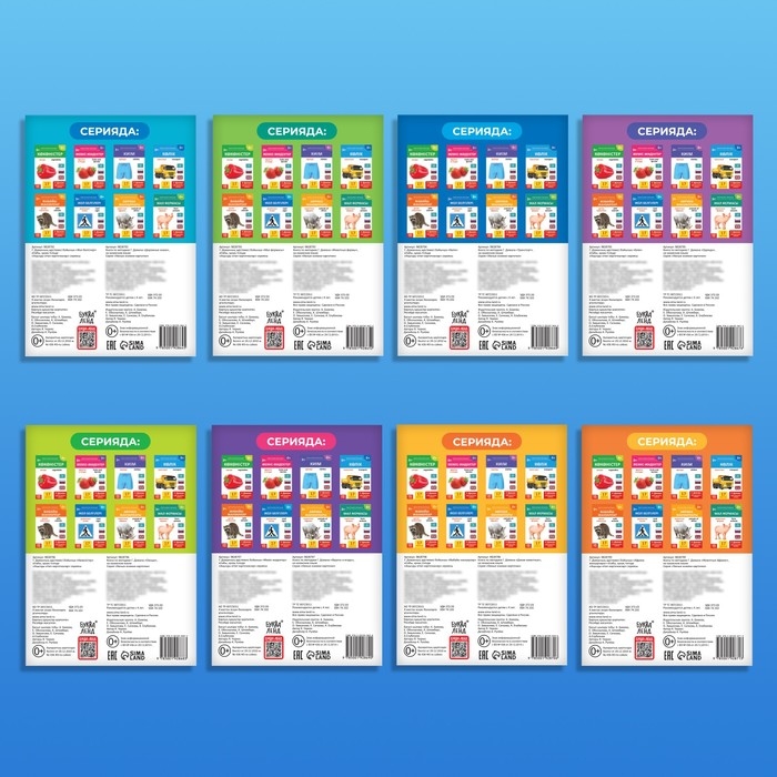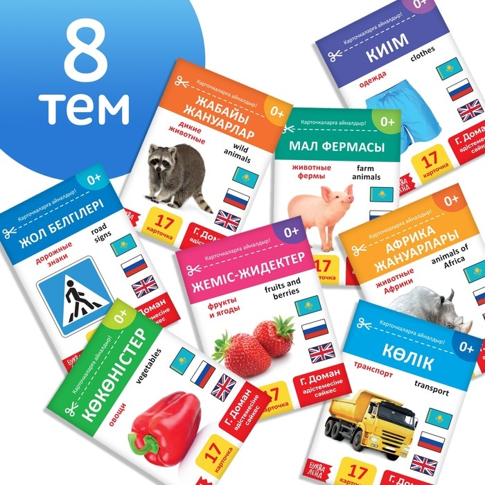 - Каждая книга содержит 17 карточек с изображениями различной тематики.