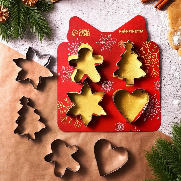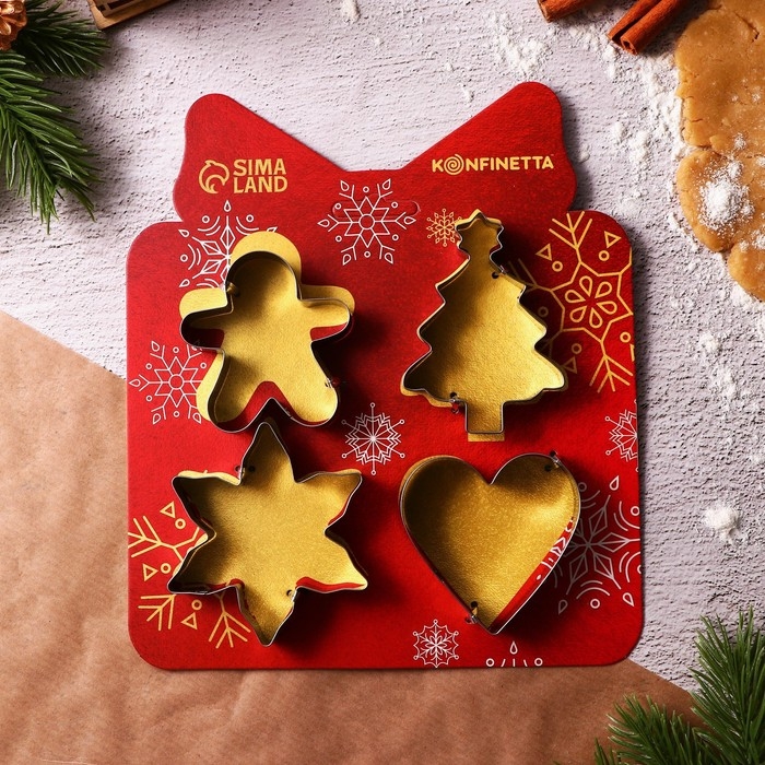 Набор форм для печенья «Классика» — идеальный выбор для любителей создавать новогодние шедевры! Эти металлические формы включают в себя 4 разных дизайна, которые помогут вам приготовить вкусное и красивое печенье к празднику.