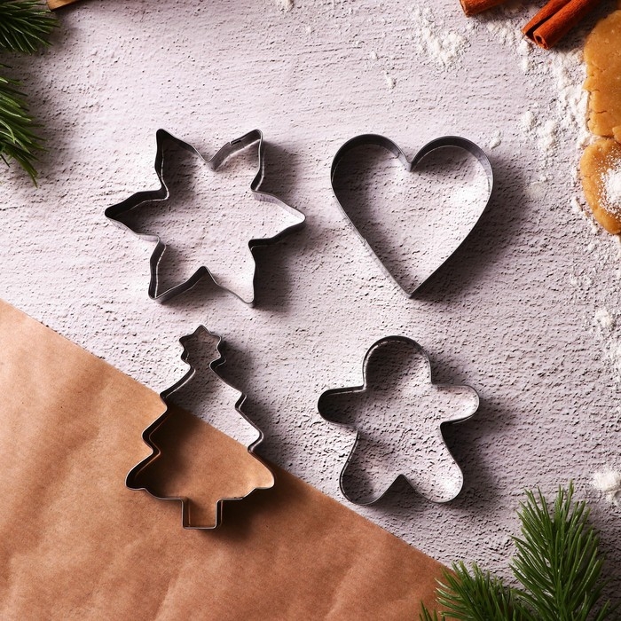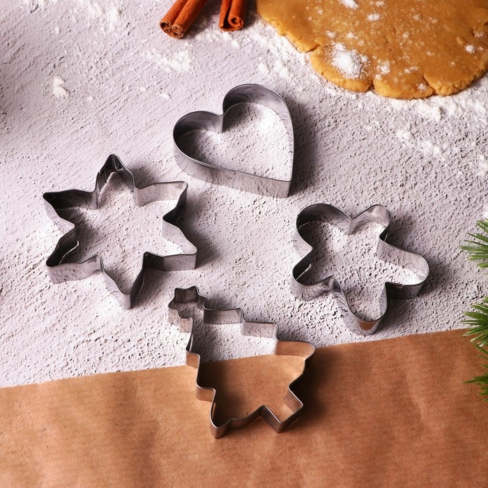 Новый год. Набор форм для печенья «Классика», металл, 4 шт