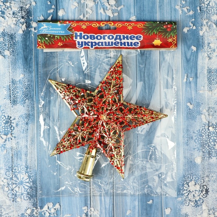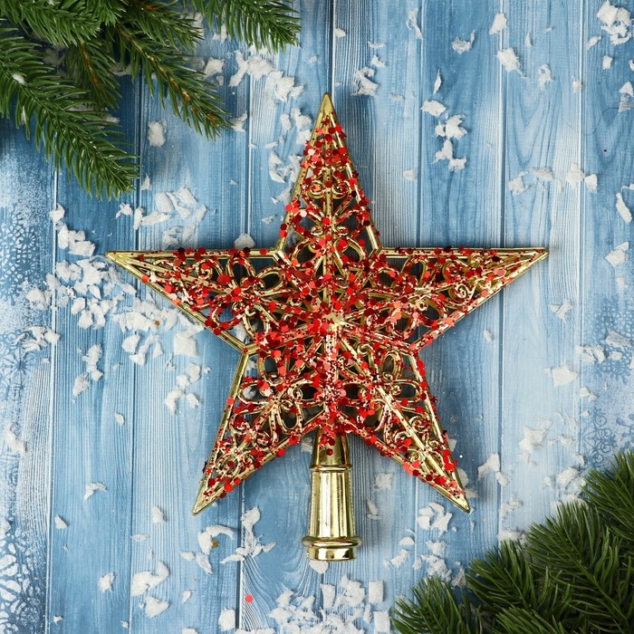 Наконечник "Звезда" узор блеск, 18х19 см, золотисто-красный