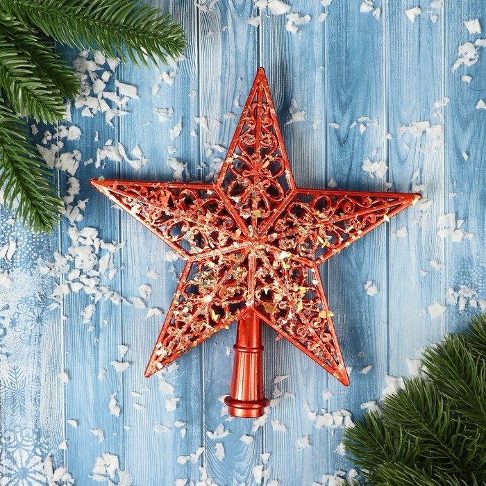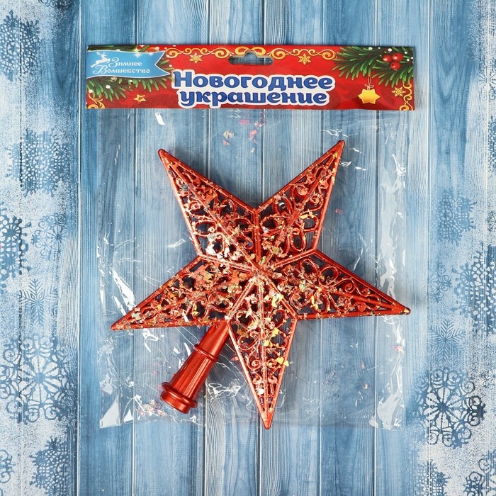 Наконечник "Звезда" узор блеск, 18х19 см, красный