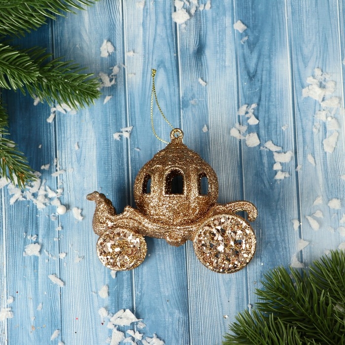 Украшение ёлочное "Карета глиттер" 10х8,5 см, золото