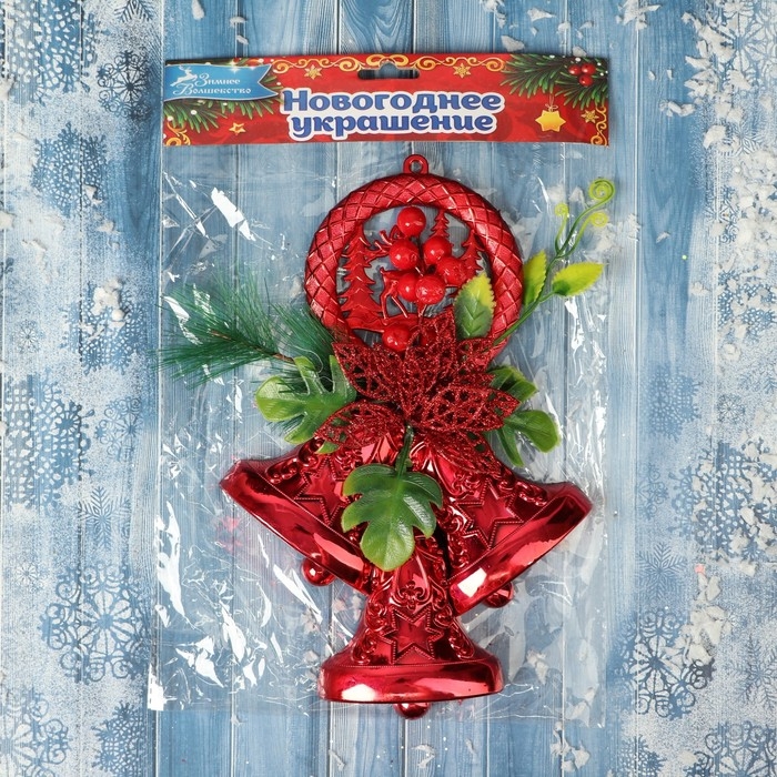 Украшение новогоднее "Колокольчик тройной" лесная сказка, 16х24 см, красный