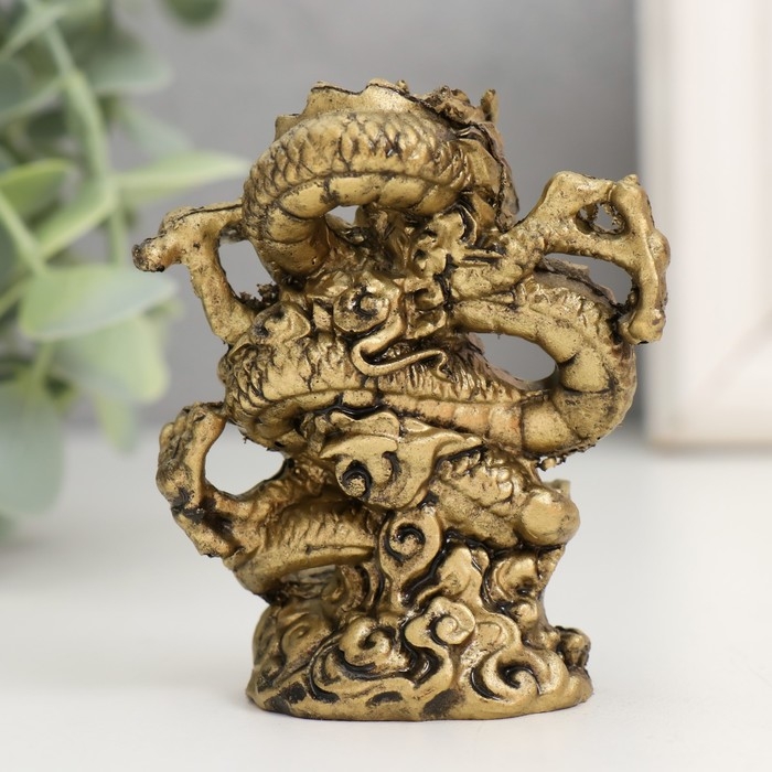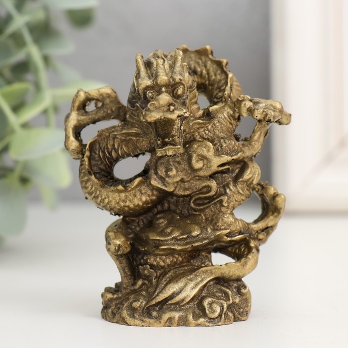 Нэцкэ полистоун под бронзу "Дракон. Активация" 3,5х6х8 см