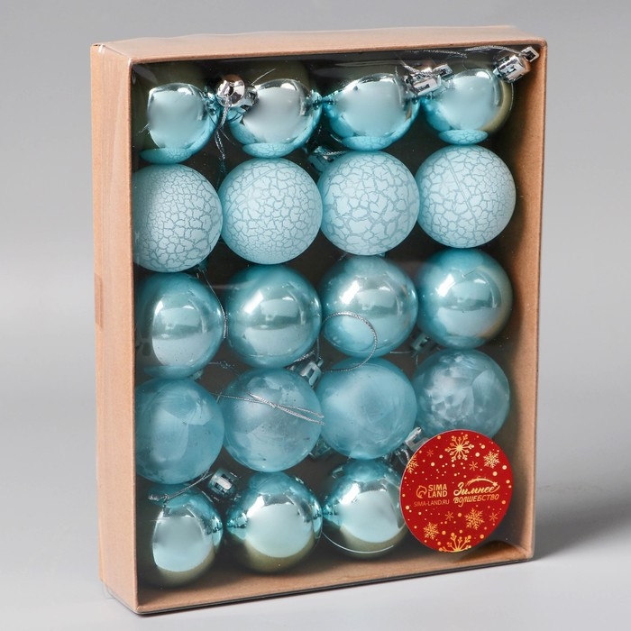 Набор шаров пластик d-4 см, 20 шт "Традиция" треск, голубой