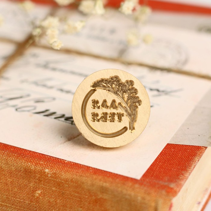 Печать для сургуча с деревянной ручкой "Цветы в узорах" 9х2,2х2,2 см