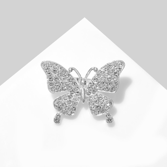 Брошь «Бабочка» сказочная, цвет белый в серебре