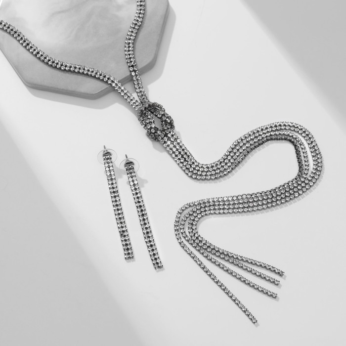 Набор 2 предмета: серьги, кулон «Элегантность» жгут, цвет белый в сером металле, 42 см