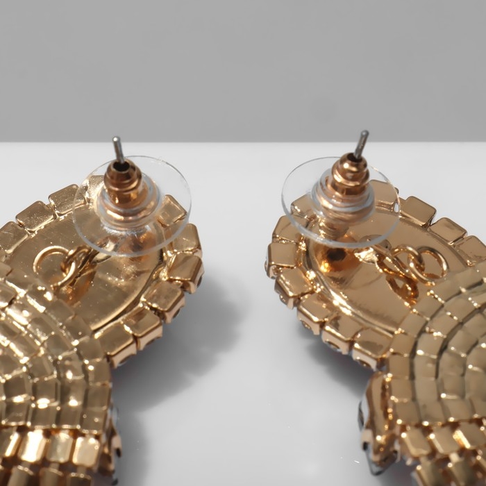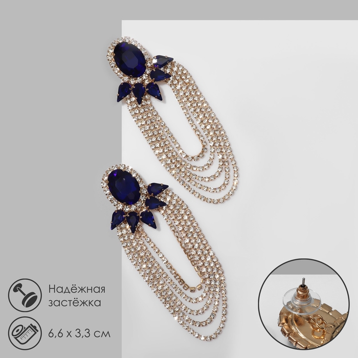 Серьги со стразами «Вечеринка» 5 рядов, цвет сине-белый в золоте