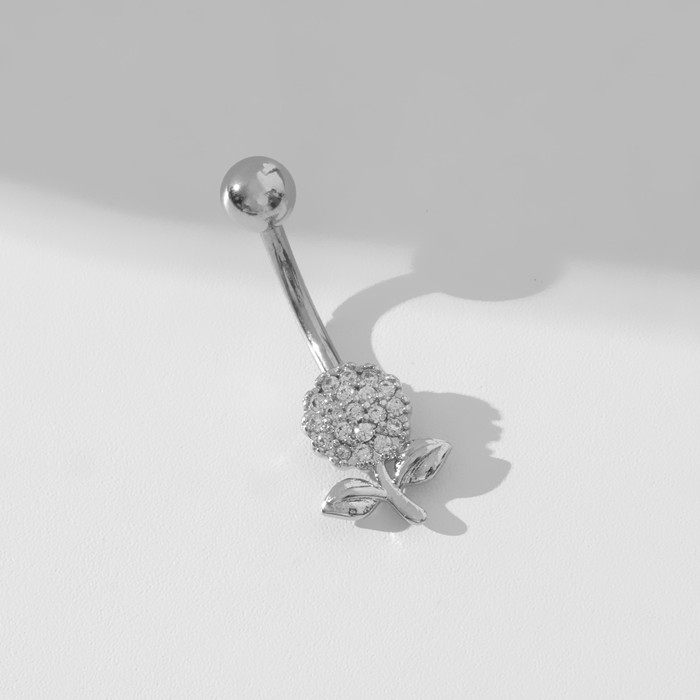 Пирсинг в пупок «Цветок» на стебельке, штанга L=1 см, цвет белый в серебре