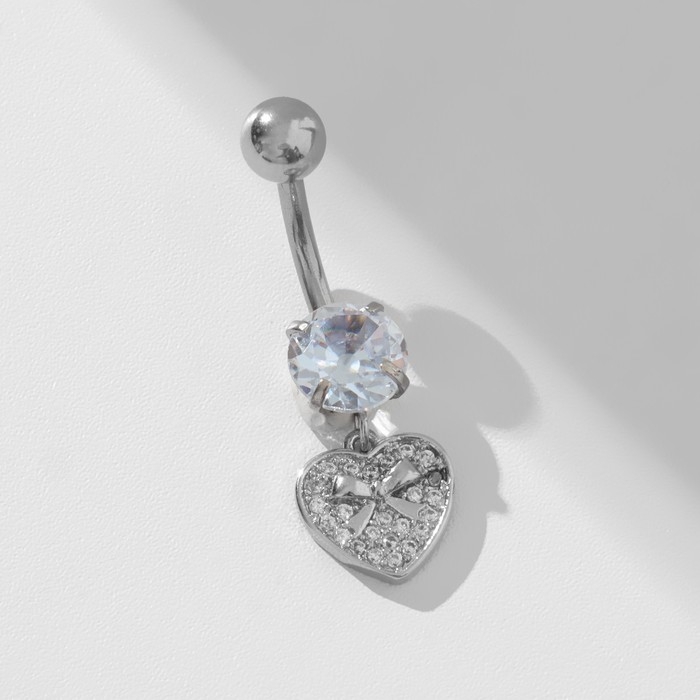 Пирсинг в пупок «Сердце», штанга L=1 см, цвет белый в серебре