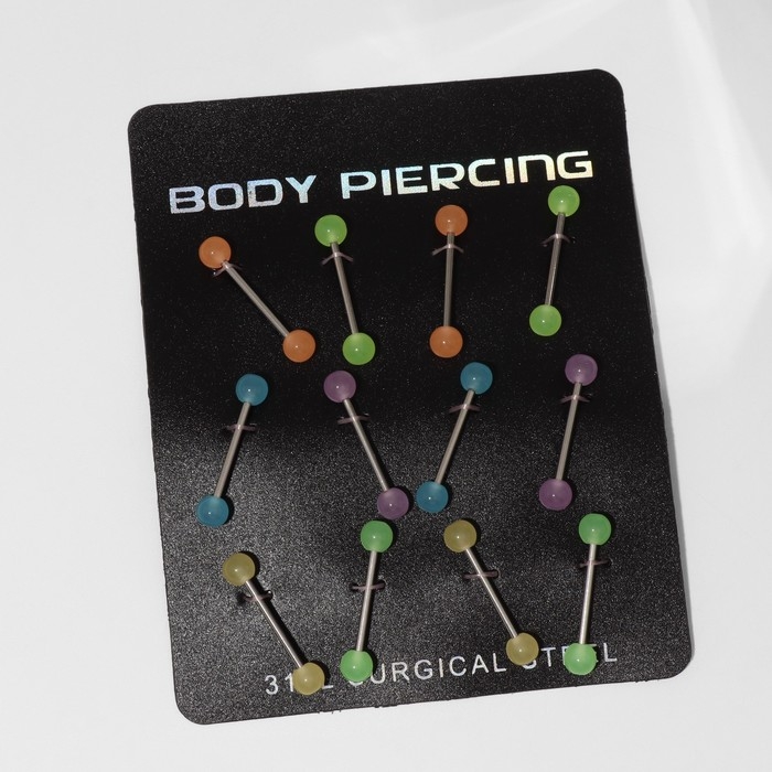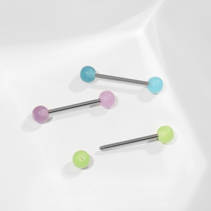 Пирсинг в язык «Шарики» желе, L=1,9 см, цвет МИКС в серебре (набор 12 шт.)