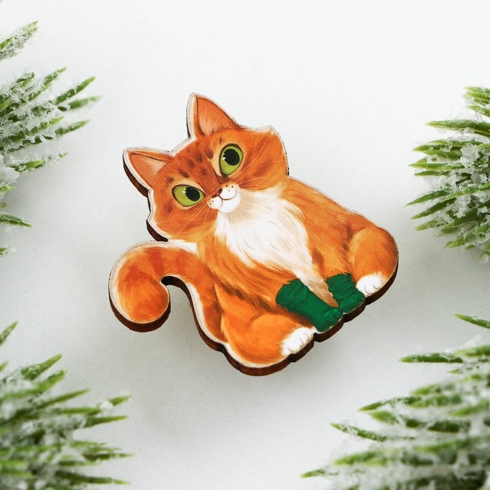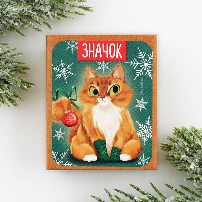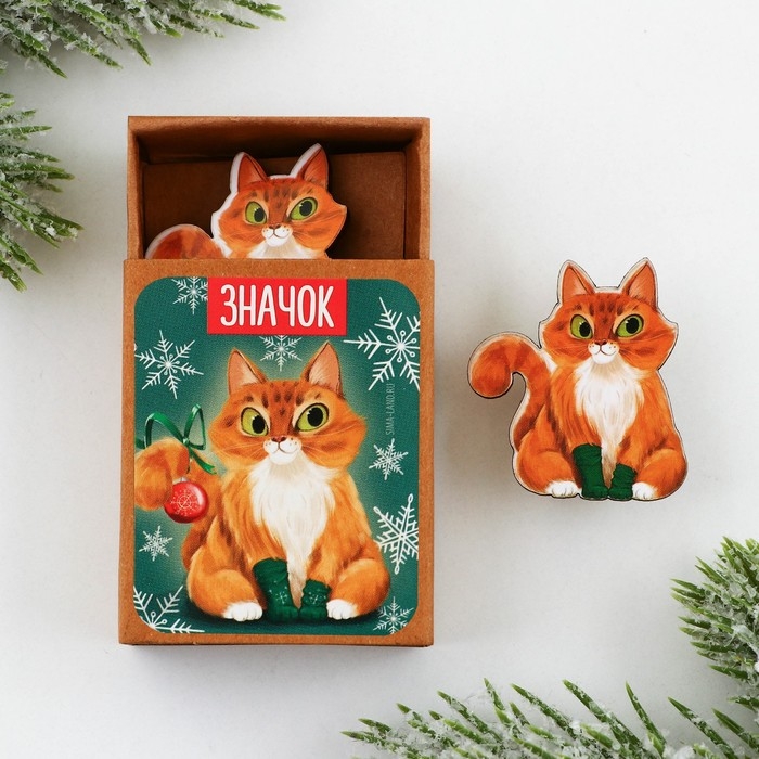 Значок новогодний в коробочке «Кот» 3 х 3,3 см