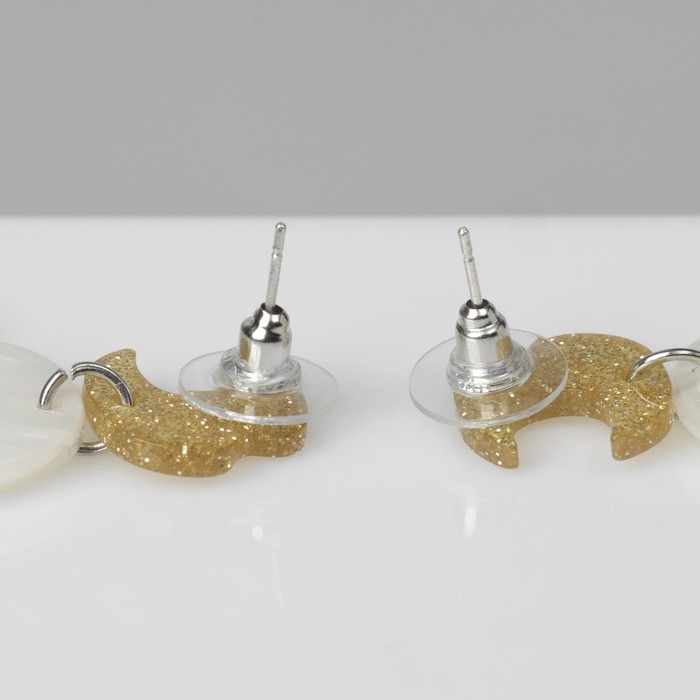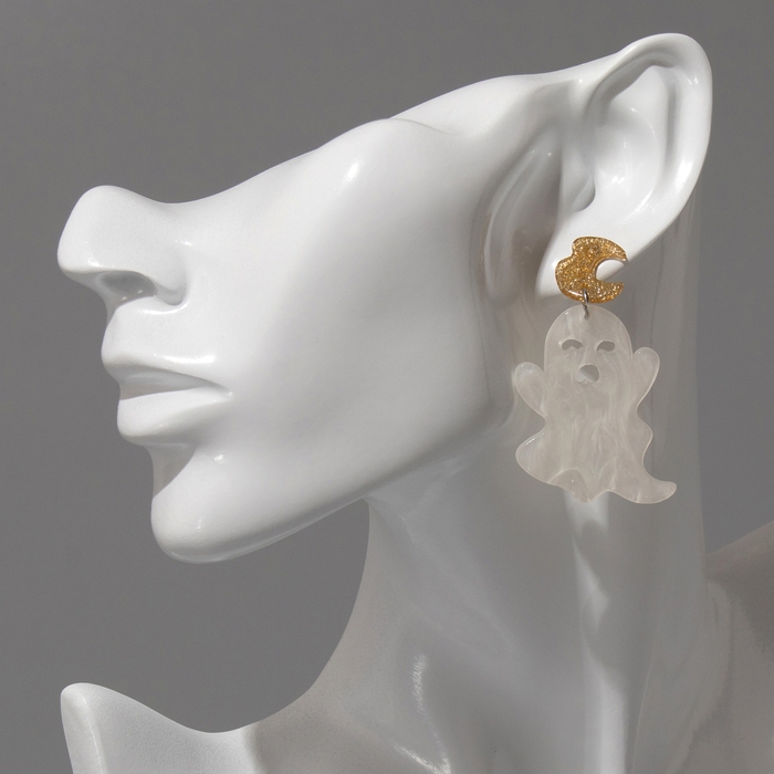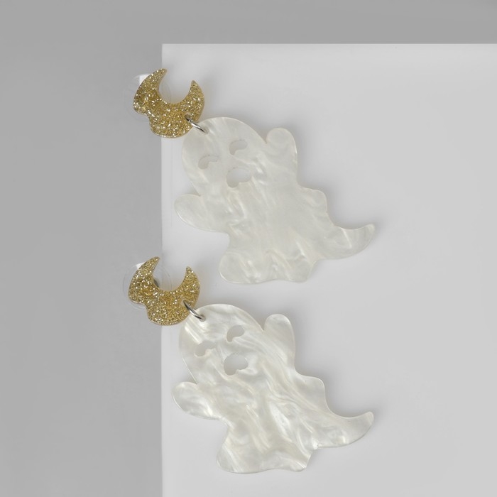 Серьги акрил «Привидения» простыни, цвет бело-золотистый в серебре