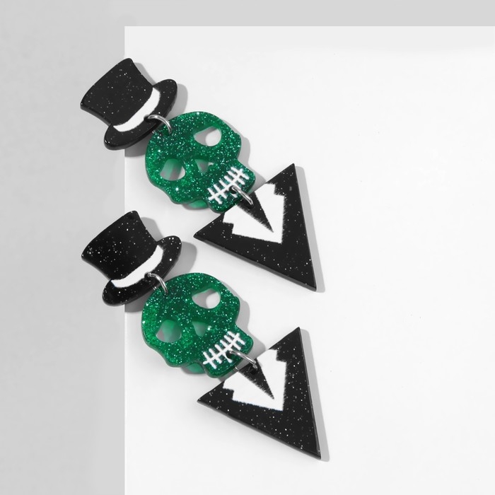 Серьги акрил «Черепа» в смокингах, цветные в серебре