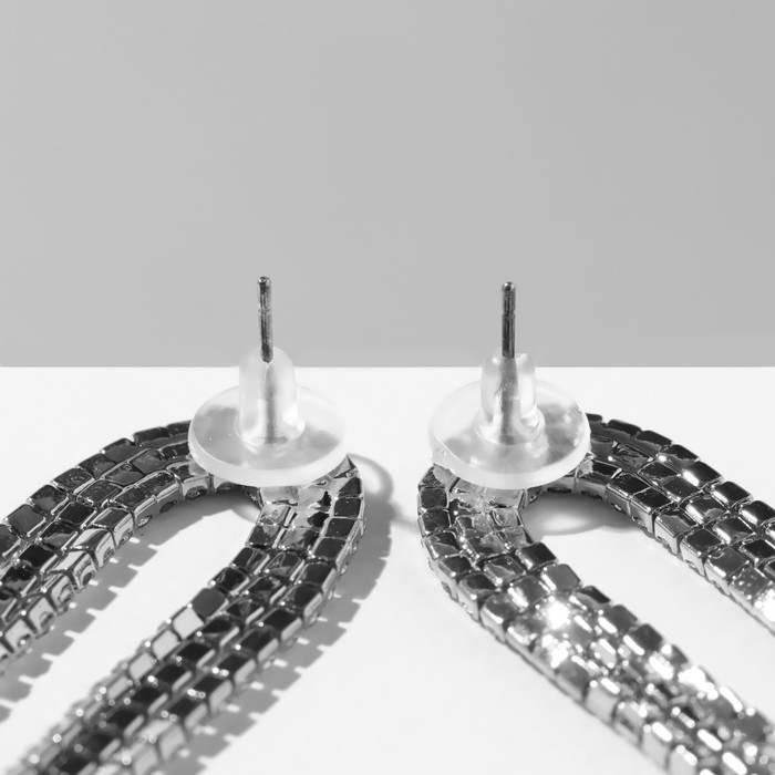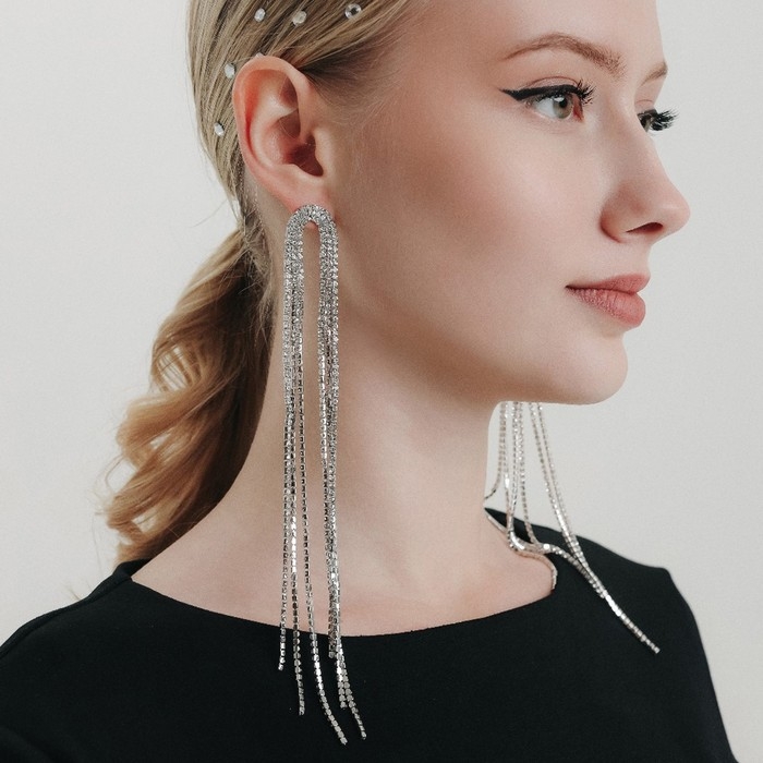 Серьги висячие со стразами «Голливуд» полукруг, 6 рядов, цвет белый в серебре, 19,5 см