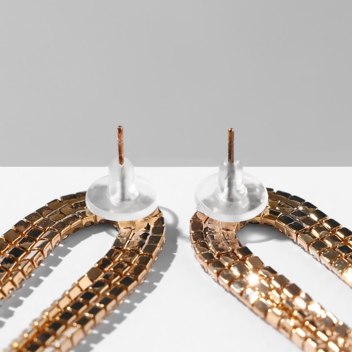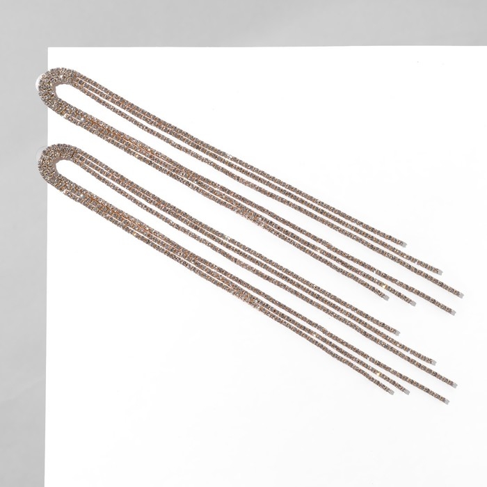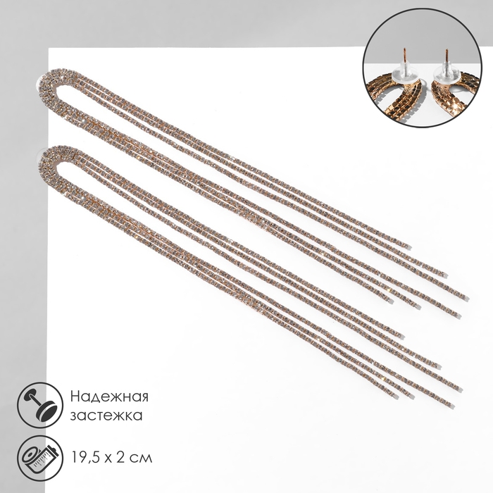 Серьги висячие со стразами «Голливуд» полукруг, 6 рядов, цвет белый в золоте, 19,5 см