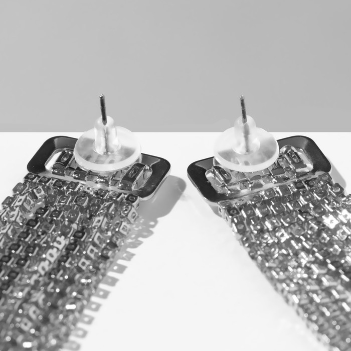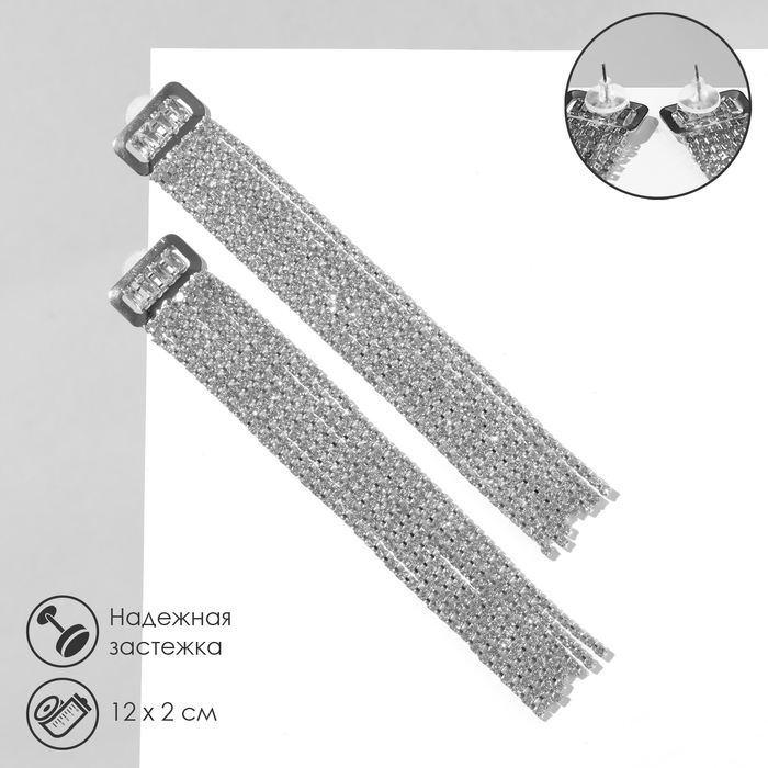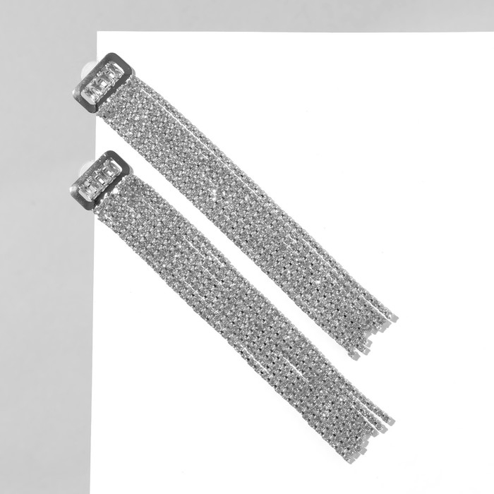 Серьги висячие со стразами «Голливуд» прямоугольник, 8 рядов, цвет белый в серебре, 12 см