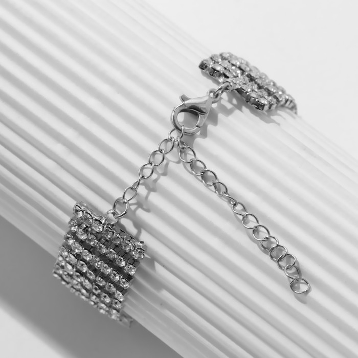 Браслет со стразами «Сияй» 2 ряда, цвет белый в серебре, 18 см