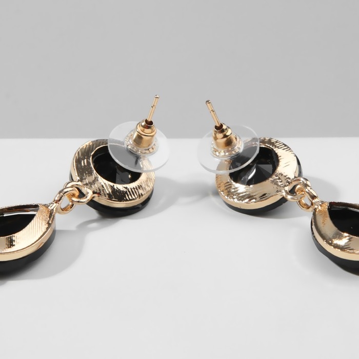 Серьги висячие со стразами «Драгоценность» капли, цвет чёрный в золоте, 9,5 см