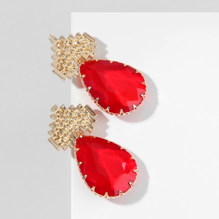 Серьги со стразами «Эдем» сердца, цвет красный в золоте