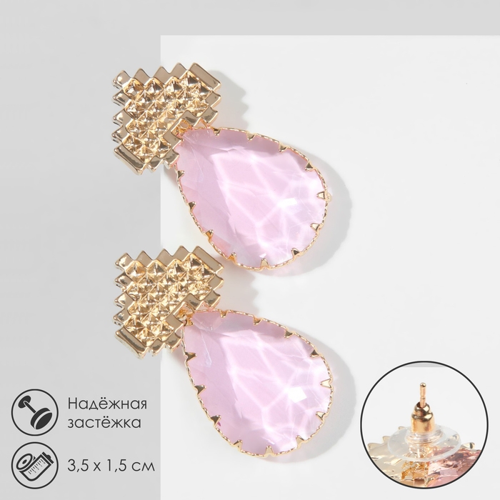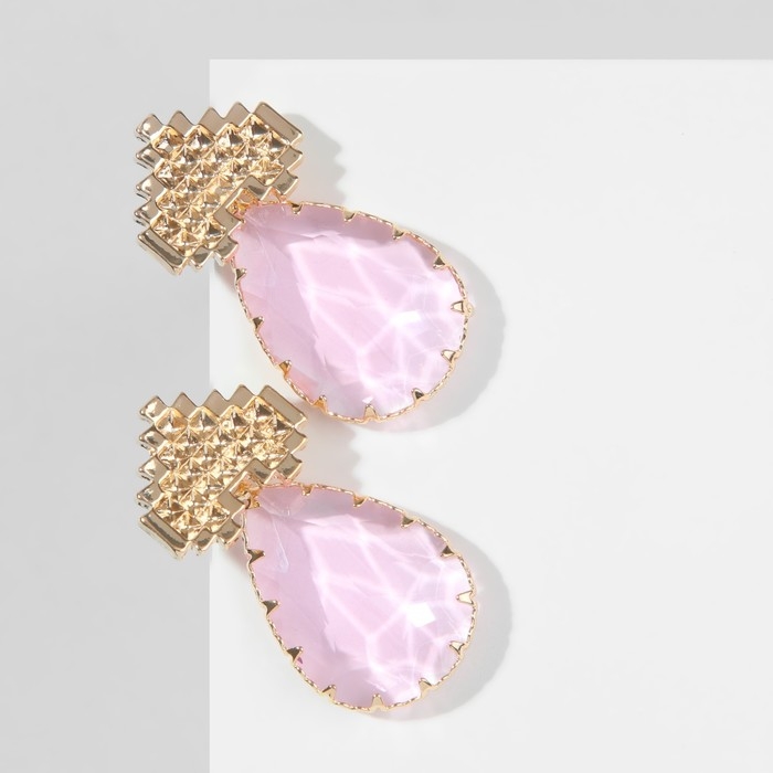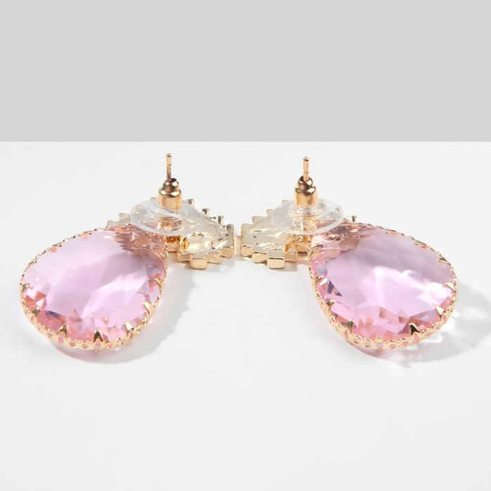 Серьги со стразами «Эдем» сердца, цвет розовый в золоте