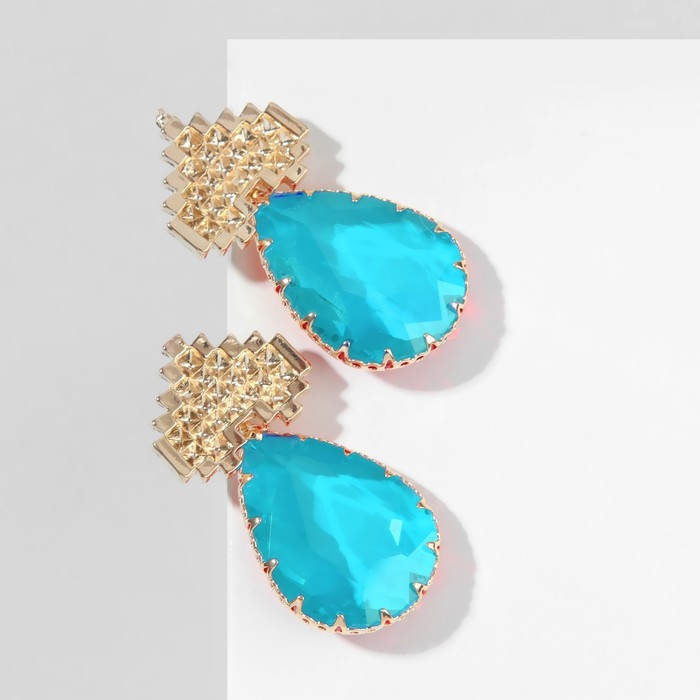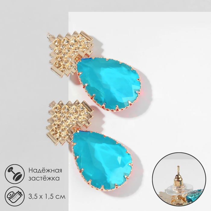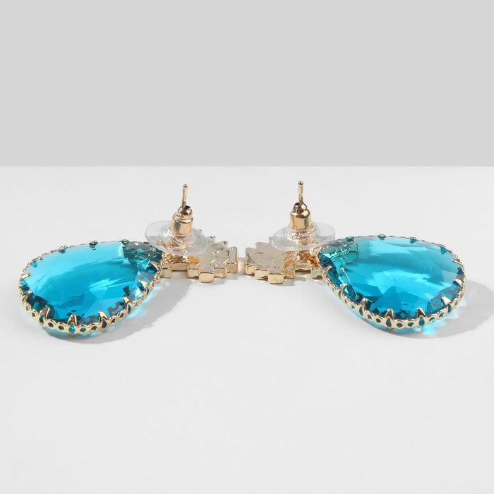 Серьги со стразами «Эдем» сердца, цвет голубой в золоте