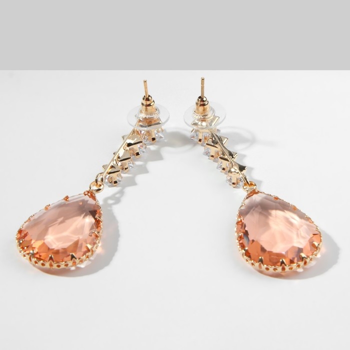 Серьги со стразами «Эдем» капля, цвет золотисто-белый в золоте