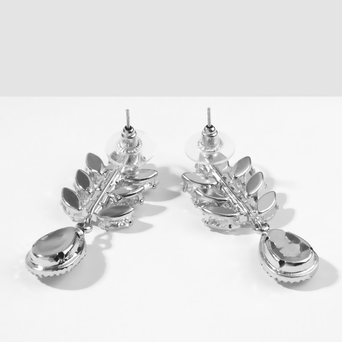 Серьги со стразами «Эдем» гроздь с каплей, цвет бело-розовый в серебре