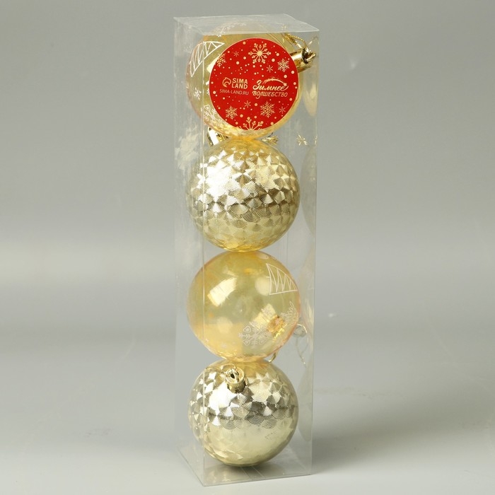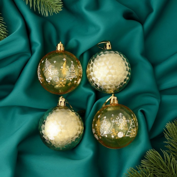 Набор шаров пластик d-5,5 см, 4 шт "Новогодние забавы" геометрия снежинки, золото жёлтый