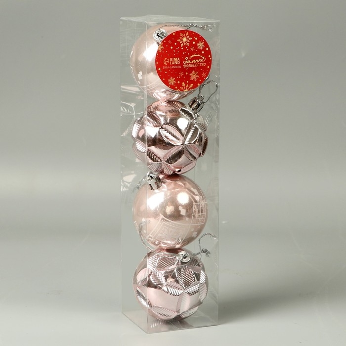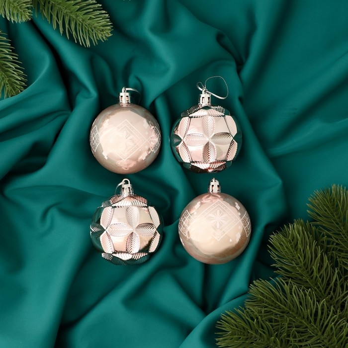 Набор шаров пластик d-5,5 см, 4 шт "Новогодние забавы" ромб цветок геометрия, розовый