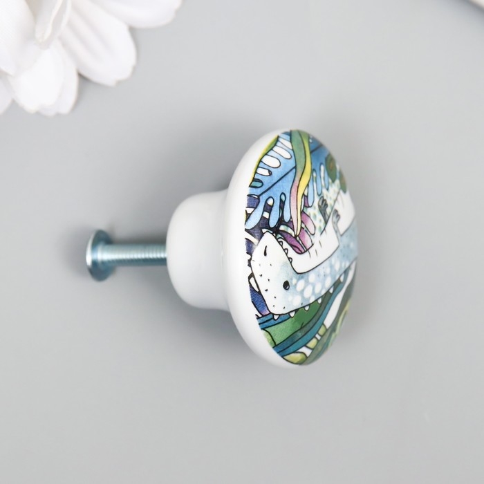Ручка для шкатулки керамика, металл "Динозаврик" 3,8х3,8х2,8 см