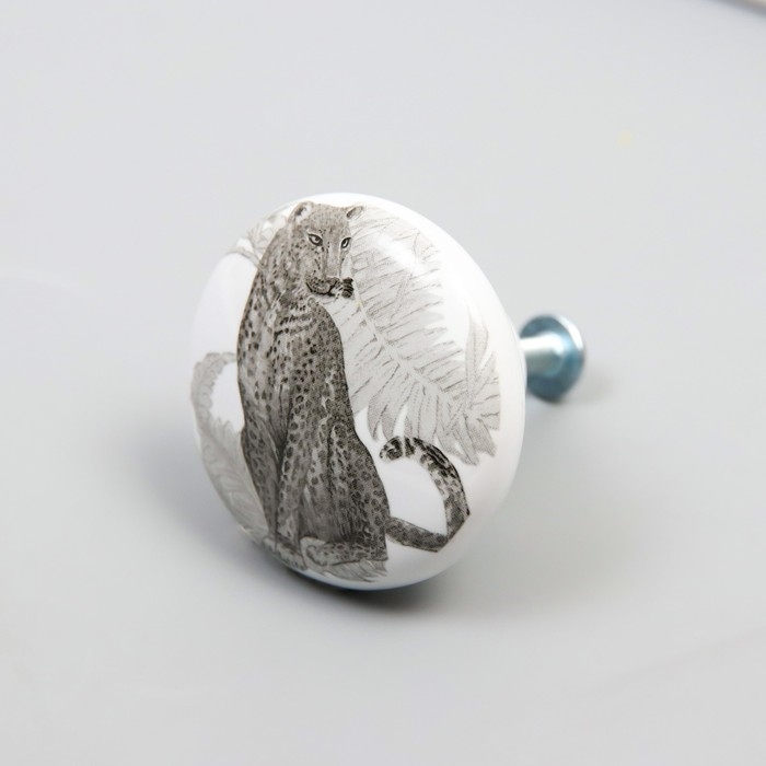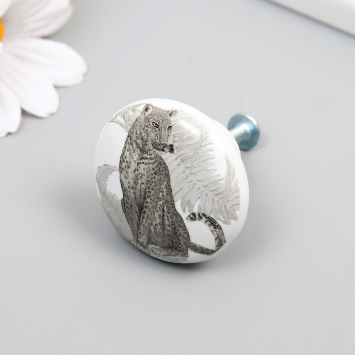 Ручка для шкатулки керамика, металл "Леопард" 3,8х3,8х2,8 см