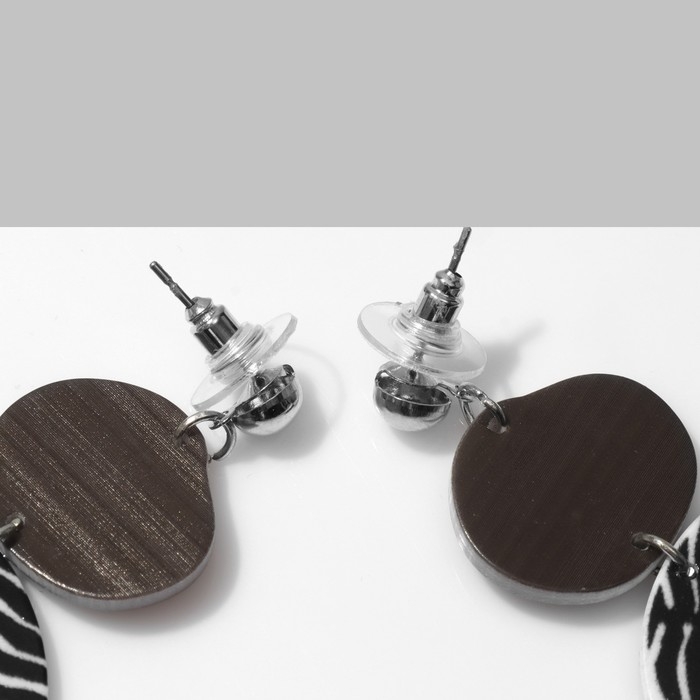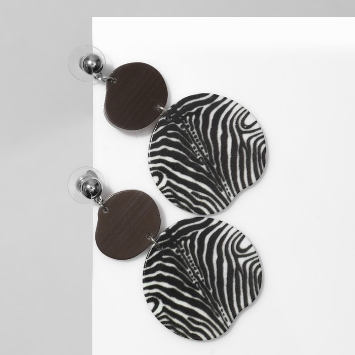 Серьги акрил «Круг», цвет чёрно-белый в серебре