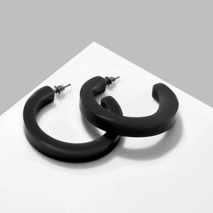 Серьги-кольца «Дуга», цвет чёрный, d=3 см
