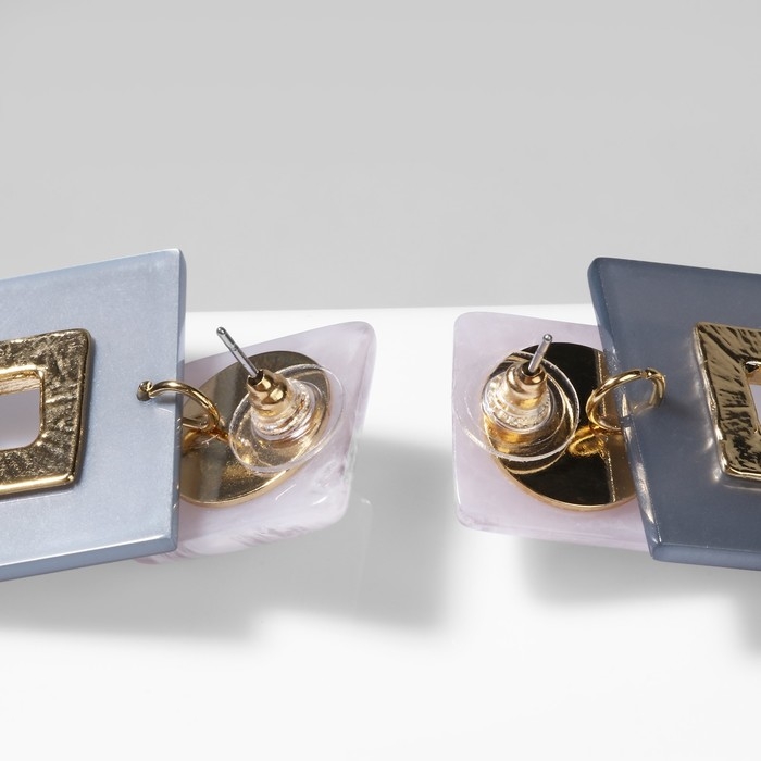 Серьги акрил «Квадро», цвет бело-голубой в золоте