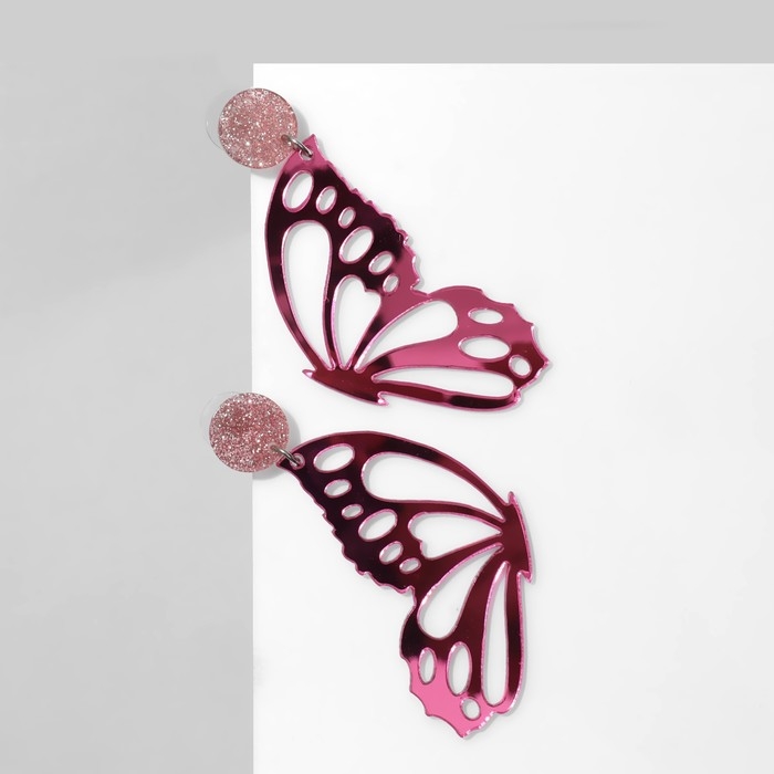 Серьги акрил «Бабочка» крылья, цвет серо-фиолетовый в серебре