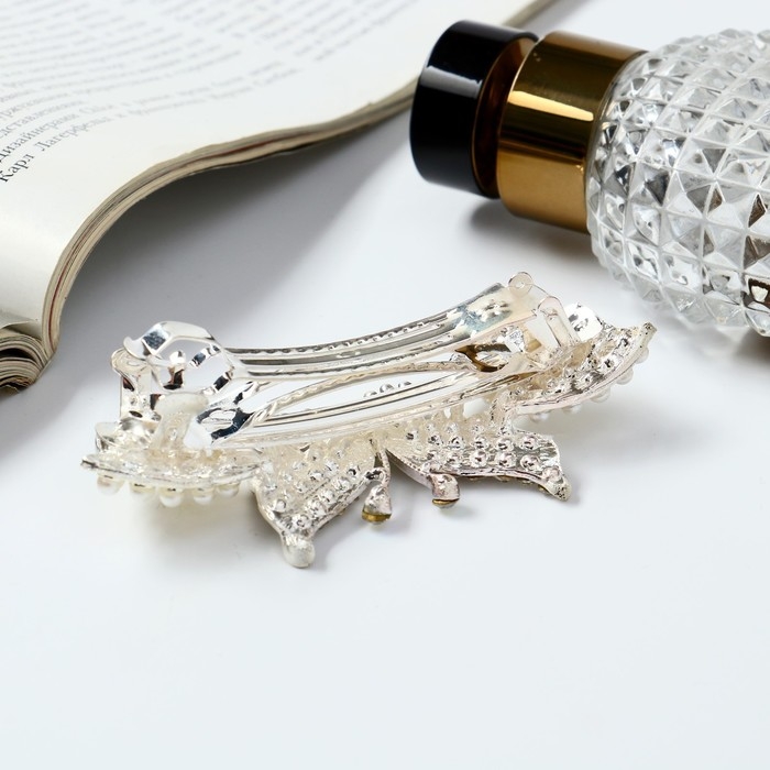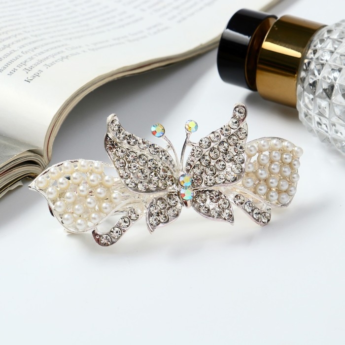 Заколка-автомат для волос "Гелая" бабочка, 9 см, серебристо-белый